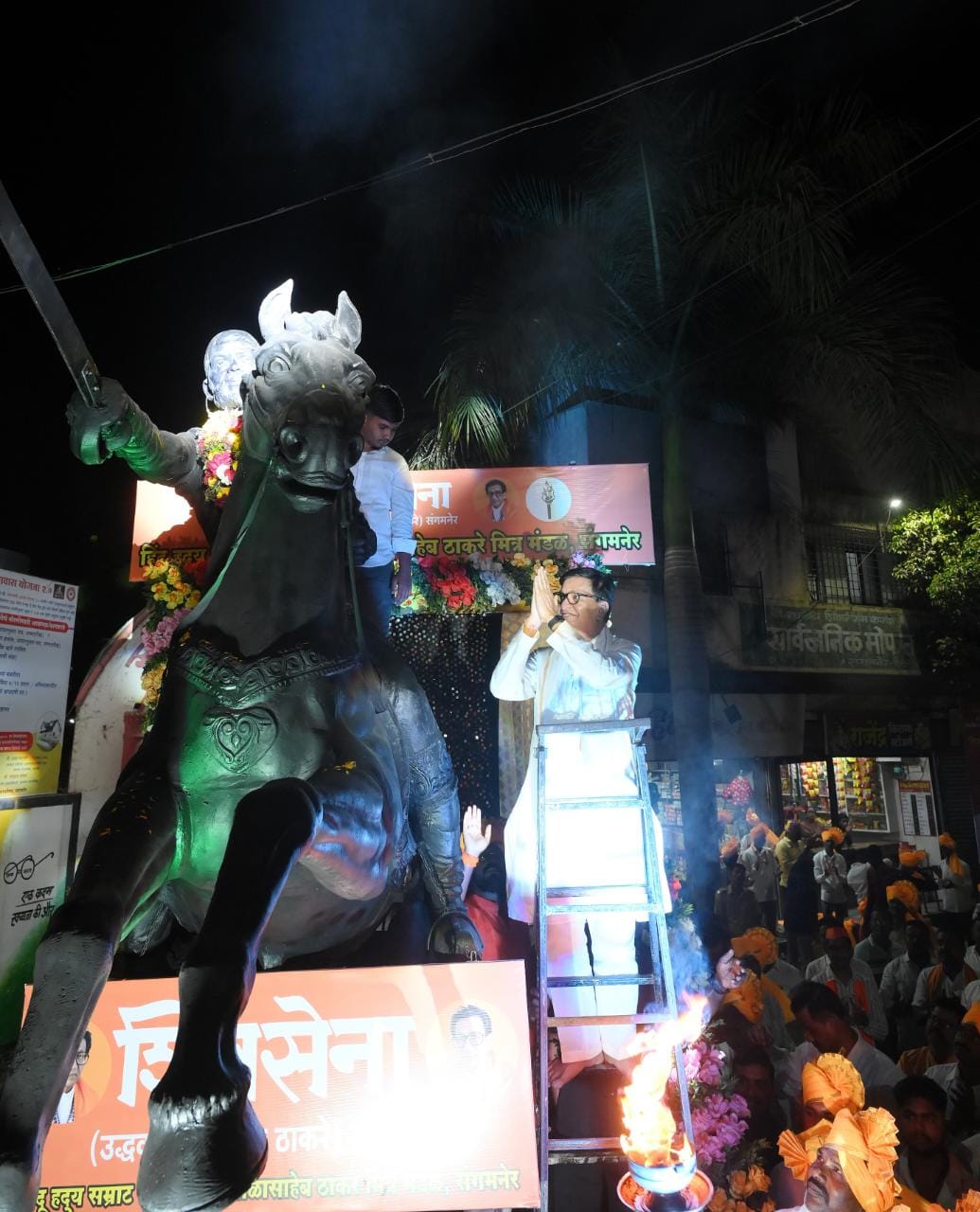 स्वाभिमानी संगमनेर शहर व तालुका शिवजन्मोत्सव समितीच्या वतीने आयोजित महाराजांच्या जयंतीनिमित्त भव्य व आकर्षक आई तुळजाभवानी देखाव्याचे उद्घाटन छत्रपती शिवाजी महाराजांचा पुतळा येथे मोठ्या उत्साहात झाले. यावेळी मा.आ.डॉ.सुधीर तांबे, आमदार सत्यजित तांबे, सौ.दुर्गाताई तांबे, डॉ.जयश्रीताई थोरात, नगराध्यक्ष डॉ.मैथिलीताई तांबे, उपनगराध्यक्ष नूर मोहम्मद शेख, काँग्रेसचे शहराध्यक्ष सोमेश्वर दिवटे,संदीप शेठ साळुंखे, विश्वासराव मुर्तडक, निखिल पापडेजा,अजय फटांगरे, गणेश मादास, आशिष कोठवळ,गोपी शिंदे, अनुज अरगडे, विशाल ढोले, गौरव डोंगरे,राहुल चौधरी, सौरभ उमरजी, एकनाथ श्रीपाद,अमर कतारी, वैष्णव मुर्तडक, यांच्यासह संगमनेर मधील शिवजयंती समिती, राष्ट्रवादी शरद पवार पक्ष, शिवसेना, शिवजयंती युवक उत्सव समिती, विविध व्यापारी संघटना, सेवाभावी संघटना,बजरंग दल, यांच्यासह विविध संघटनांचे पदाधिकारी, नागरिक महिला व तरुणाई मोठ्या संख्येने उपस्थित होते.