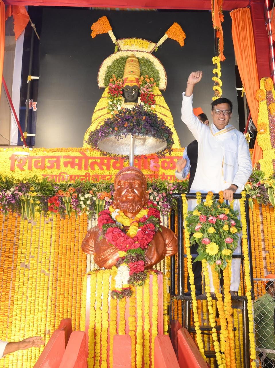 छत्रपती शिवाजी महाराजांच्या जन्मोत्सवानिमित्त तुळजाभवानी देखाव्याने परिसर सजला