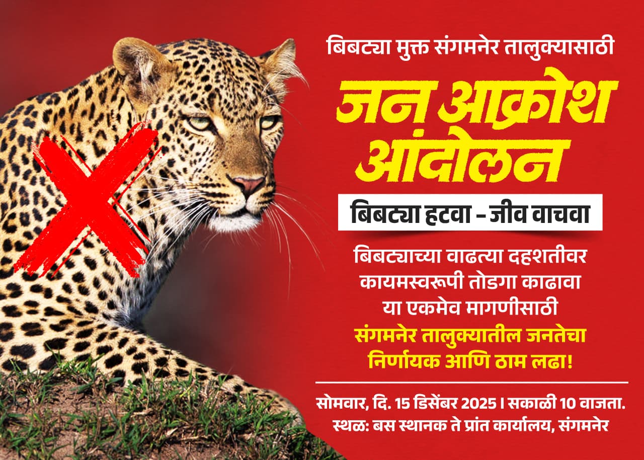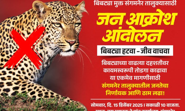 बिबट्यामुक्त संगमनेर तालुका यासाठी सरकार व वन विभागाच्या विरोधात ही भव्य जन आक्रोश आंदोलन होणार आहे. याबाबत अधिक माहिती देताना डॉ.थोरात म्हणाल्या की, संगमनेर तालुक्यामध्ये बिबट्याची संख्या मोठ्या प्रमाणात वाढली आहे. यामुळे शेतकरी नागरिक लहान मुले यांच्यामध्ये मोठी भीती निर्माण झाली आहे. जवळेकडलग येथील लहानग्या सिद्धेश ला आपला जीव गमावा लागला याचबरोबर अनेक नागरिकांवर सातत्याने नरभक्षक बिबट्यांनी हल्ले केले आहेत. वेळोवेळी मागणी करूनही शासनाकडून कोणतीही ठोस उपाययोजना होत नसल्याने संगमनेर तालुक्यातील तमाम जनतेच्या वतीने सोमवार दिनांक 15 डिसेंबर 2025 रोजी सकाळी दहा वाजता संगमनेर बस स्थानक ते प्रांत कार्यालय या ठिकाणी भव्य जन आक्रोश मोर्चा काढण्यात येणार आहे.तरी या जर आक्रोश मोर्चामध्ये सर्व नागरिक, महिला, युवक, शेतकरी या सर्वांनी सहभागी व्हावे असे आवाहन बिबट्या हटाव आंदोलन समितीने केले असून बिबट्यांच्या वाढत्या दहशतीवर कायमस्वरूपी तोडगा काढण्यासाठी निर्णायक ठाम लढ्यामध्ये सर्वांनी सहभाग घ्यावा असे आवाहन डॉ.जयश्रीताई थोरात व जन आक्रोश आंदोलन समितीच्या वतीने करण्यात आले आहे.