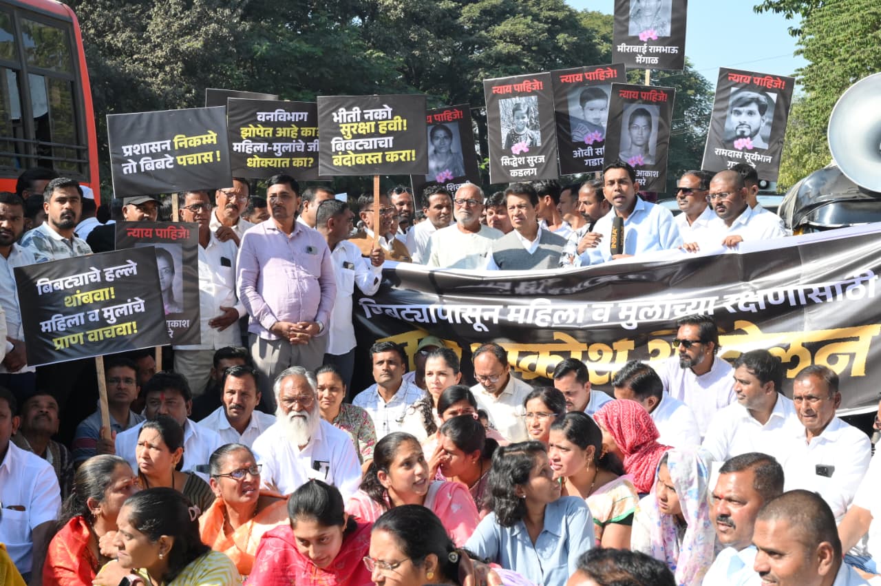 संगमनेर तालुक्यामध्ये बिबट्यांची संख्या वाढली असून यामुळे नागरिकांमध्ये मोठी घबराट निर्माण झाली आहे याचबरोबर एका वर्षामध्ये 12 नागरिकांचा मृत झाले असून सातत्याने बिबट्यांची हल्ले होत आहे. यावर प्रभावी उपाययोजना करावी याकरता माजी आमदार डॉ.सुधीर तांबे आमदार सत्यजित तांबे, डॉक्टर जयश्रीताई थोरात यांच्यासह तालुक्यातील विविध पक्षांचे कार्यकर्ते व नागरिक महिला युवक यांच्या उपस्थितीमध्ये भव्य जन आक्रोश मोर्चा संपन्न झाला.