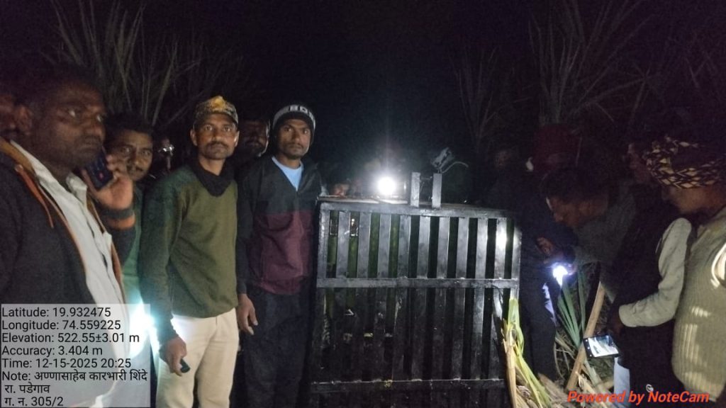 कोपरगाव तालुक्यातील पढेगाव शिवारात बिबटया चा वावर आढळला असून अनेक ग्रामस्थांनी बिबटया ला बघितले होते त्यामुळे परिसरात भीती निर्माण झाली होती सरपंच व ग्रामस्थ पढेगाव यांच्या मागणी नुसार अण्णासाहेब कारभारी शिंदे रा पढेगाव यांच्या शेतात वनविभागाने पिंजरा लावला होताआज दि 15 डिसेंबर 2025 रोजी सांयकाळी 7 च्या सुमारास बिबटया पिंजऱ्यात कैद झालायाची माहिती ग्रामस्थांनी तात्काळ वनविभागाला दिली व वनकर्मचारी तात्काळ पढेगावात हजर झाले बिबट्याला बघण्यासाठी ग्रामस्थांनी मोठी गर्दी केली.सदर कार्यवाही उपवनसंरक्षक अहिल्यानगर श्री धर्मवीर सालविठ्ठल ,सहा वनसंरक्षक श्री जि पी मिसाळ यांच्या मार्गदर्शनाखाली वनपरिक्षेत्र अधिकारी कोपरगाव निलेश रोडे यांच्या निर्देशानुसार वनपाल भगवान जाधव, वनरक्षक अमोल किंकर , वनरक्षक श्रीमती श्रध्दा पडवळ , वनरक्षक श्रीमती निकीता पगारे, वनपाल सानप, अक्षय बडे, राहूल कानडे, विलास डगळे यांनी पिंजरा लावून बिबटया बंदिस्त करून पूर्ण केलीसदर बिबट्या सुमारे 4 ते 5 वर्षांचा आहे. सदर बिबट्याला डिग्रस रोपवाटिका राहुरी येथे हलविण्यात आले आहे