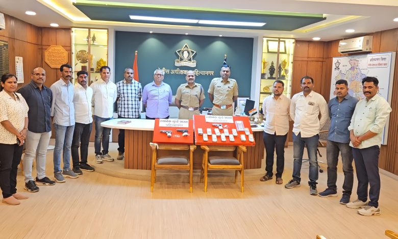 मा. श्री. सोमनाथ घार्गे, पोलीस अधीक्षक अहिल्यानगर, यांनी दरोड्याच्या गुन्ह्यातील आरोपी तात्काळ ताब्यात घेणे बाबत श्री किरणकुमार कबाडी, पोलीस निरीक्षक, स्थानिक गुन्हे शाखा अहिल्यानगर यांना आदेशित केले होते.त्यानुसार पो.नि. किरणकुमार कबाडी, स्थानिक गुन्हे शाखा, अहिल्यानगर यांचे नेतृत्वाखाली स्थानिक गुन्हे शाखेचे हरिष भोये पोलीस अंमलदार सोमनाथ झांबरे, दिपक घाटकर, फुरकान शेख, बिरप्पा करमल, बाळासाहेब नागरगोजे भिमराज खर्से, बाळासाहेब खेडकर, किशोर शिरसाठ, भाऊसाहेब काळे, अमोल कोतकर, प्रशांत राठोड, महिला पोलीस अंमलदार सोनल भागवत, चालक भगवान धुळे, अरुण मोरे यांचे पथक तयार करुन सदर पथकास दरोड्याच्या गुन्ह्यातील आरोपी तात्काळ ताब्यात घेणे बाबत सुचना व मार्गदर्शन करुन रवाना केले. वर नमुद पथकाने दरोड्याचे गुन्ह्यामधील आरोपींची माहिती संकलित करुन व्यवसायीक कौशल्याचे आधारे माहिती काढत असतांना पथकास दिनांक 28/02/2026 रोजी गुप्त बातमीदारामार्फत सदरचा गुन्हा हा शेखर उर्फ बंट्टी संजय पाडळे रा.देवगाव ता.नेवासा त्याचे इतर साथीदारास केला असुन तो नेवासा, माळी चिंचोरा फाटा परिसरात येणार असल्याची माहिती प्राप्त झाली. पथकाने तात्काळ नेवासा ते छत्रपती संभाजीनगर जाणारे रोडवर माळी चिंचोरा फाटा परिसरामध्ये सापळा रचुन थांबले असता पथकास सदर परिसरात दोन इसम संशयीतरित्या फिरतांना दिसुन आले. तेव्हा पथकाने त्यांना शिताफिने ताब्यात घेतले. ताब्यात घेतलेल्या इसमांना त्यांचे नांव गांव विचारता त्यांनी त्यांची नावे 1) शेखर उर्फ बंट्टी संजय पाडळे वय – 32 वर्षे रा. देवगाव ता.नेवासा, जि. अहिल्यानगर, 2) किरण बंडु काळे वय- 29 वर्षे रा. नागफनीवस्ती नेवासा ता.नेवासा जि. अहिल्यानगर असे असल्याचे सांगितले. ताब्यातील शेखर उर्फ बंट्टी संजय पाडळे याचेकडे व्यवसायीक कौशल्याचे आधारे सखोल तपास करता त्याने वरील प्रमाणे गुन्हा हा त्यांचे साथीदार 3) भाऊसाहेब छगन भोसले रा.नेवासा फाटा, ता.नेवासा, 4) सचिन उर्फ गटण्या पवार रा. खळवाडी, नेवासा खु ाा ता.नेवासा व त्याचे 8 ते 9 अनोळखी साथीदार यांचेसह गुन्ह्या केल्याची कबुली दिली आहे.आरोपीचे कब्जातुन गुन्ह्याचे वेळी वापरलेली 35,000/- रुपये किमतीची एक गावठी कट्टा(अग्निशस्त्र) व दोन जिवंत काडतुसे, 30,000/-रु कि.चा एक मोबाईल, 6,00,000/- रु रोख रक्कम असा एकुण 6,65,000/- रुपये किमतीचा मुद्देमाल जप्त करण्यात आला आहे.