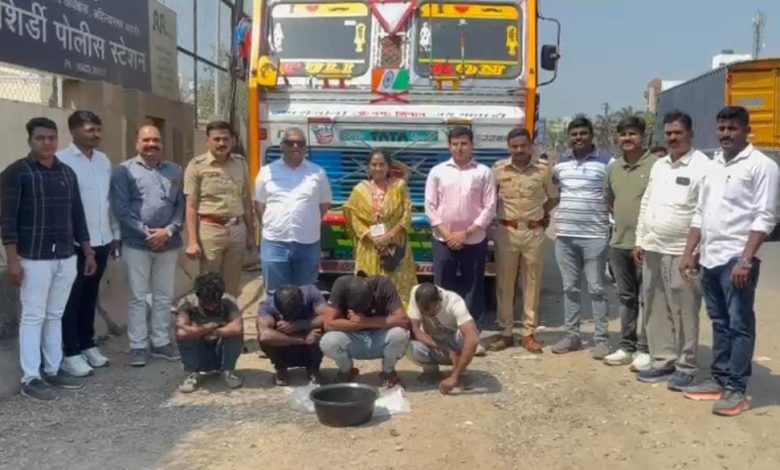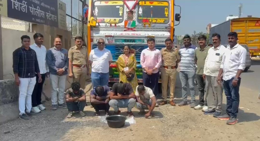 नमुद पथक दिनांक 03/03/2026 रोजी शिर्डी पोलीस ठाणे हद्दीमध्ये अवैध धंद्याची माहिती काढत असतांना पथकास गुप्त बातमीदारामार्फत ट्रक नंबर WB25M5023ú यामध्ये केंद्र सरकारने प्रतिबंधीत केलेले मांगुर मासे भरुन नगर मनमाड हायवे रोडवरील निमगाव बायपास रोड चौक येथुन जाणार असल्याची माहिती प्राप्त झाली. पथकाने तात्काळ शिर्डी पोलीस स्टेशनचे पोलीस निरीक्षक रणजित गलांडे, पोउपनि/ सागर काळे व पोलीस अंमलदार यांना बोलावुन घेवुन निमगाव बायपास रोडवर सापळा रचुन ट्रक क्रमांक WB25M5023 हा ताब्यात घेवुन त्यामध्ये खात्री केली असता ट्रकचे केबिनमध्ये प्रतिबंधीत मांगुर मासे असल्याचे आढळुन आले. ट्रकमध्ये मिळुन आलेल्या इसमांना त्यांचे नांव गांव विचारता त्यांनी त्यांची नावे 1) स्वपन नियम डे वय-36 वर्षे रा. बामनगज थाना दत्तपुकुर जि.बाराशाद पश्चिम बंगाल, 2) मकबुल रौफ सरदार वय- 31 वर्षे रा. मसलंदापुर, निमतला तालुका गोवडमा जि. नॉर्थ 24 परगना, पश्चिम बंगाल, 3) कुतुब आयुब मंडल वय- 35 वर्षे रा. मंदीया थाना बदुडीया जि. नॉर्थ 24 परगना, पश्चिम बंगाल, 4) मृत्युंजय मुकुल विश्वास वय-27 वर्षे रा. हाबरा थाना हाबरा जि. नॉर्थ 24 परगना, पश्चिम बंगाल असे असल्याचे सांगितले. ताब्यातील इसमांकडे त्यांचे ताब्यात मिळुन आलेले मांगुर मासे कोठुन आणले आहे व कोणाकडे घेवुन जाणार आहे याबाबत विचारपुस करता त्यांनी सदरचे मासे हे मिराज (पुर्ण नाव माहिती नाही) याने पश्चिम बंगाल येथुन भरुन दिलेले असुन ते खोपोली मुंबई येथे भाई (पुर्ण नाव माहित नाही) याचेकडे घेवुन जात असल्याची माहिती दिली. त्यानंतर पथकाने प्रतिबंधीत मांगुर माशाने भरलेला ट्रक खात्री कामी शिर्डी पोलीस ठाणे येथे नेवुन मत्स विकास अधिकारी सौ. प्रतिक्षा सुधाकर पाटेकर यांचेशी संपर्क करुन ताब्यात घेण्यात आलेल्या ट्रकमधील माशांची खात्री करणेकामी संपर्क केला असता सौ. प्रतिक्षा सुधाकर पाटेकर यांना दिनांक 03/03/2026 रोजी शिर्डी पोलीस ठाणे या ठिकाणी येवुन नमुद ट्रकमधील माशांची खात्री केली असता त्यामध्ये प्रतिबंधीत मांगुर मासे असल्याचा अभिप्राय दिला.ताब्यात घेण्यात आलेल्या इसमांकडुन 4,00,000/- रुपये किमतीचे 400 किलो प्रतिबंधीत मांगुर मासे व 25,00,000/- रुपये किमतीचा ट्रक असा एकुण 29,00,000/- रुपये किमतीचा मुद्देमाल जप्त करुन प्रतिबंधीत मासे कायदेशीर प्रक्रिया करुन नाश करण्यात आले आहेत.ताब्यातील इसमांविरुध्द मत्स विकास अधिकारी सौ. प्रतिक्षा सुधाकर पाटेकर, मत्सव्यवसाय विकास अधिकारी, अहिल्यानगर यांनी दिलेल्या फिर्यादीवरुन शिर्डी पोलीस ठाणे गु.र.नं. 160/2025 भारतीय न्याय संहिता 2023 चे कलम 223, 275, 3(5) प्रमाणे गुन्हा दाखल करण्यात आला असुन पुढील तपास शिर्डी पोलीस ठाणे करीत आहेत. सदरची कारवाई मा. श्री. सोमनाथ घार्गे पोलीस अधीक