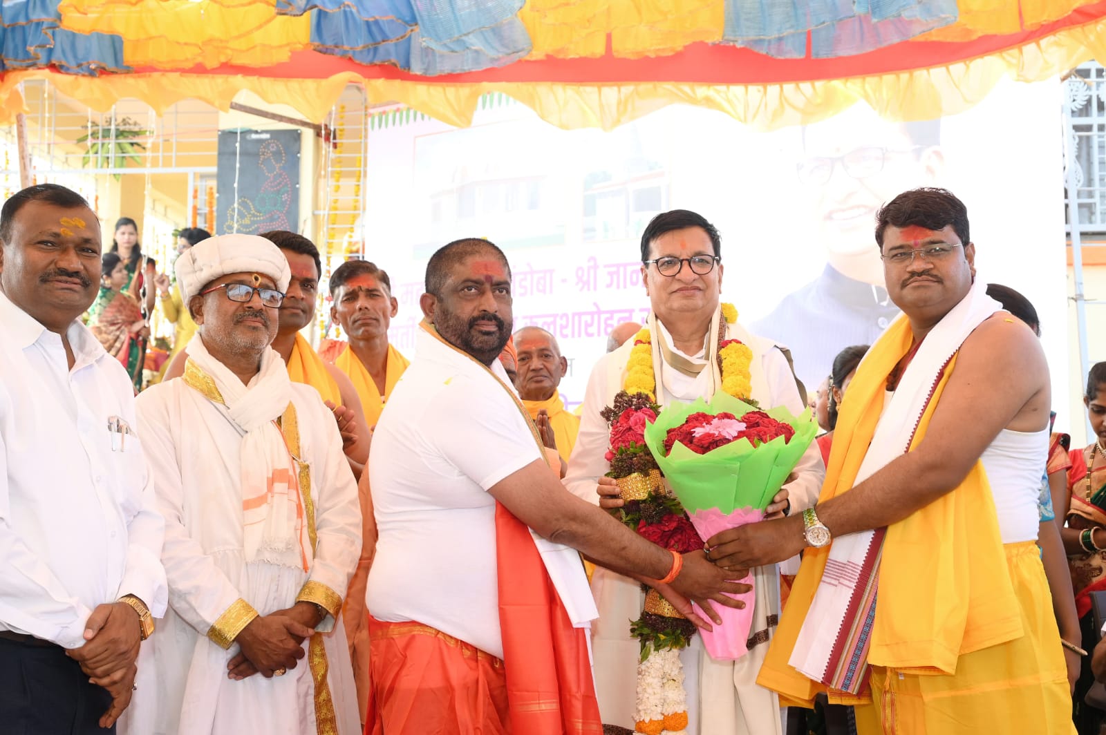 यावेळी महंत दयानंद गिरी महाराज यांच्या उपस्थितीमध्ये रामगड या डोंगरावरती महादेव मंदिर खंडोबा मंदिर व जाणका माता मंदिराचा कालक्षारोहण व विधिवत मूर्तींची प्राणप्रतिष्ठा करण्यात आली. हनुमान जयंतीच्या निमित्ताने आयोजित अखंड हरिनाम सप्ताहाच्या निमित्ताने गावातील महिलांनी पारंपारिक वेशभूषा केली डोक्यावर कलश, हरिनामाचा गजर, टाळ मृदुंग, यांच्या साथीने दिंडी निघाली मंत्रांच्या आणि राम व हनुमानाच्या उद्घोषात महाराष्ट्राचे वरिष्ठ नेते बाळासाहेब थोरात यांच्या हस्ते कलशारोहण संपन्न झाले यावेळी संपूर्ण वातावरण भक्तीमय झाले होते यावेळी माजी मंत्री बाळासाहेब थोरात म्हणाले की , महाराष्ट्राला थोर संत , महात्मे आणि समाज सुधारकांची परंपरा आहे, वारकरी संप्रदाय हा अत्यंत महत्त्वाचा असून सर्वांना सामावून घेणार आहे. मानवता हा धर्म प्रत्येकाने जोपासला पाहिजे.जात धर्म पंथ सर्व बाजूला ठेवून मानवाच्या कल्याणासाठी संतांनी दिलेल्या विचार आपल्या सर्वांना पुढे न्यायचा आहे. हा विचार छत्रपती शिवाजी महाराज आणि भारतरत्न डॉ बाबासाहेब आंबेडकर यांचा विचार आहे. समानतेच्या वाटेवर लोकशाहीच्या मार्गाने देशाची आणि सर्वांची प्रगती झाली असून मानवता धर्म बळकट करण्यासाठी सर्वांनी काम करावे असे आवाहन त्यांनी केले.तर मोहनराव करंजकर म्हणाले की , लोकनेते बाळासाहेब थोरात यांच्या नेतृत्वाखाली गावांमध्ये सातत्याने विकासाच्या योजना राबवल्या गेल्या आहेत. रामगडाला आज प्रति पंढरपूरचे रूप आले आहे अत्यंत भक्तिमय वातावरणामध्ये हा सोहळा होत असून पुढील अनेक पिढ्यांच्या लक्षात राहणारा हा कार्यक्रम असल्याचे ते म्हणाले. यावेळी गावातील व परिसरातील नागरिक महिला व युवक मोठ्या संख्येने उपस्थित होते युवकांनी काढलेली पारंपारिक दिंडी सर्वांची लक्ष वेधून घेतली होती.