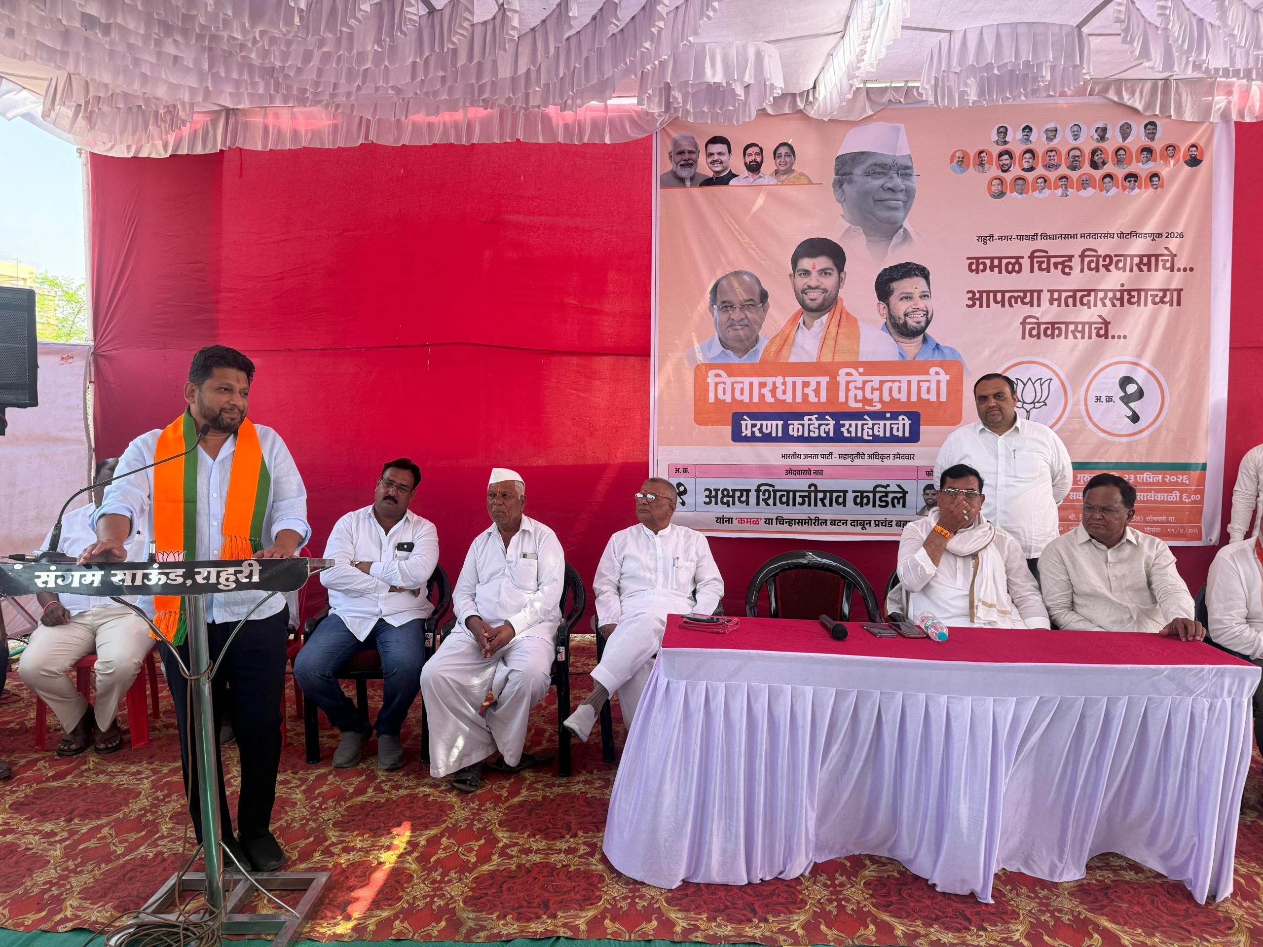 मुख्यमंत्री देवेंद्र फडणवीस यांच्या नेतृत्वाखाली ही निवडणूक एकत्रितपणे लढवली जात असून, मतदारसंघाच्या उज्ज्वल भविष्यासाठी ही शेवटची संधी असल्याचेही त्यांनी नमूद केले. आगामी काळात मतदारसंघाची पुनर्रचना होणार असल्याने ही निवडणूक अत्यंत महत्त्वाची असल्याचे त्यांनी स्पष्ट केले.यावेळी राहुरी तालुक्यातील उबाटा गटाचे तालुकाप्रमुख सचिन म्हसे यांनी डॉ. विखे पाटील यांच्या उपस्थितीत भारतीय जनता पार्टीत प्रवेश केला. या प्रवेशामुळे महायुतीची ताकद आणखी वाढले आहे बैठकीत संघटन बळकट करण्यावर विशेष भर देत विकासाच्या मुद्द्यांवर जनतेपर्यंत प्रभावीपणे पोहोचण्याचे मार्गदर्शन करण्यात आले. पदाधिकारी, कार्यकर्ते व ग्रामस्थ मोठ्या संख्येने उपस्थित होते. शेवटी, येत्या २३ तारखेला होणाऱ्या मतदानात कमळ चिन्हासमोरील बटण दाबून भारतीय जनता पार्टी व महायुतीला बळकट करण्याचे आवाहन करण्यात आले.